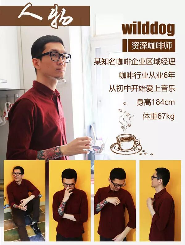 Wilddog就是個特立獨行的人,他堅持自己的愛好,并且在事業(yè)上也小有成就。身為某著名咖啡企業(yè)的區(qū)域經(jīng)理,他手里掌管著10多家咖啡店。在事業(yè)剛起步階段他在工作上被人稱為“瘋子”,很多同事也親切的管他叫“大狗哥”,因此他給自己取了一個炫酷的英文名“Wilddog”。