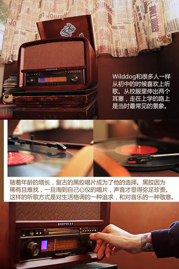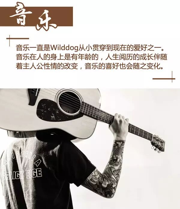 音樂幾乎成為Wilddog除了工作以外的全部,他熱愛音樂的感覺,這種感覺從初中開始聽歌開始。期間最瘋狂的時候玩過重金屬樂隊,而現(xiàn)在則更喜歡聆聽音樂。音樂風(fēng)格也變的舒緩溫情。